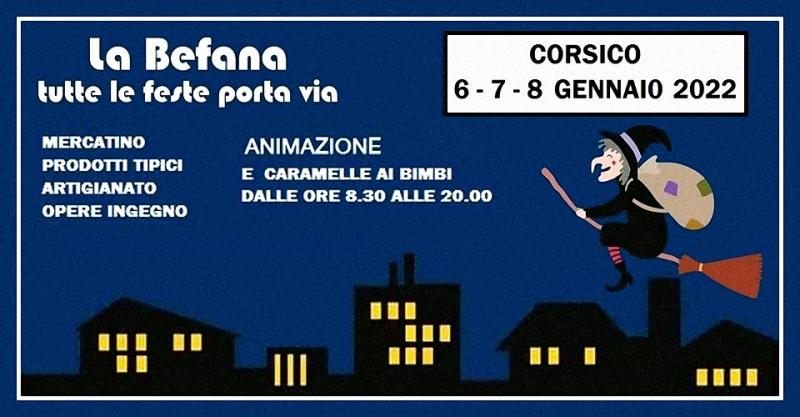 A Corsico in provincia di Milano si svolge nei giorni da Giovedì 06 a Sabato 08 Gennaio 2022 il Mercatino dell'Epifania - la Befana tutte le Feste porta via.