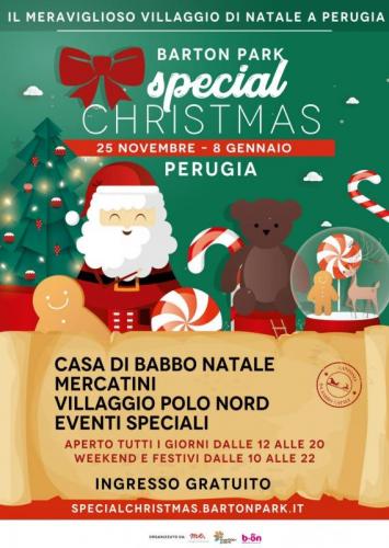 Il Barton Park, un parco di oltre tre ettari in uno dei punti nevralgici della città di Perugia, è pronto a trasformarsi per la prima volta in un meraviglioso Villaggio di Natale: dal 25 Novembre all'8 Gennaio i visitatori verranno avvolti da una magica e coinvolgente atmosfera che caratterizza il periodo delle festività natalizie.