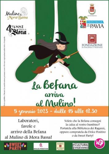 A Vigevano in provincia di Pavia si svolge nella giornata di Giovedì 05 Gennaio 2023 la festa "La Befana arriva al Mulino".
