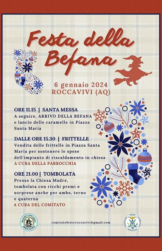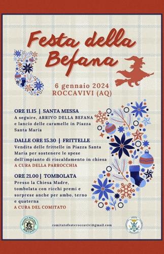 Siamo lieti di presentarvi il programma della Festa della Befana a Roccavivi del giorno 06 Gennaio 2024