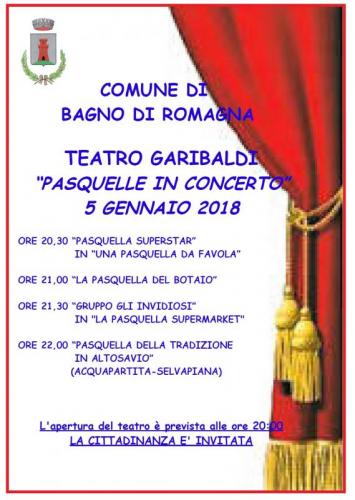Venerdì 5 Gennaio 2018 è la notte delle Pasquelle per le vie dei paesi, con i "pasquellanti" mascherati che intoneranno stornelli ricchi di satira insieme alle tradizionali canzoni di Natale ed Epifania.