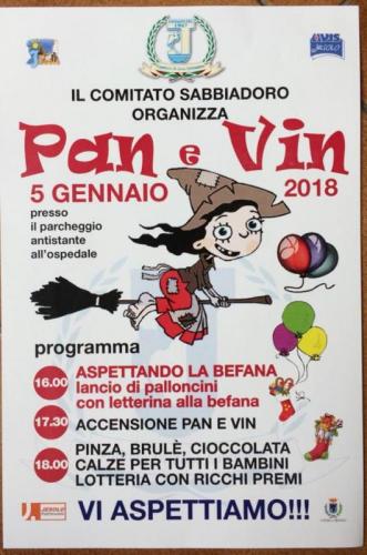 La tradizione del Pan e Vin a Jesolo, con pinza, vin brulè, cioccolata calda e calzette per i bambini si ripropone venerdì 5 gennaio 2018 alle ore 17.30.