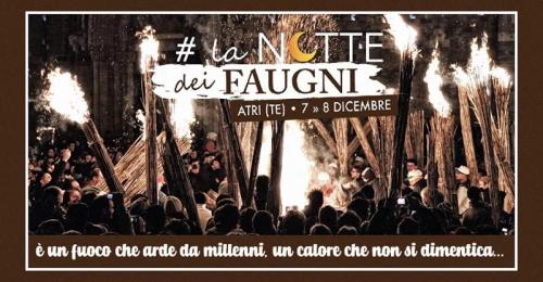 Persone di ogni età, ognuna delle quali abbraccia un “Faugno” acceso, accompagnati dalle caratteristiche note della Banda cittadina, sfilano lungo le vie del centro storico della città di Atri. Una lunga notte dedicata al fuoco, l’appuntamento più magico della vetusta città, che rinnova il millenario legame con un rito che ancora oggi stupisce e sorprende. I “Faugni” appaiono per la prima volta nei riti religiosi nel 431 d.C. con il concilio di Efeso. In seguito la cerimonia fu riproposta in occasione della traslazione della Santa Casa da Nazaret a Loreto, attuando un vero e proprio processo di “cristianizzazione” di un rito profondamente radicato nel mondo pagano.