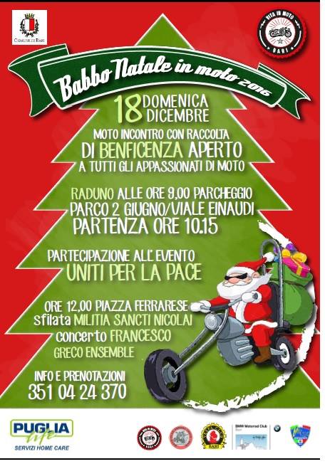 Babbo Natale in moto a Bari domenica 18 dicembre 2016.