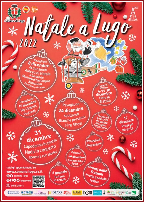 Sabato 17 Dicembre arriva Il Natale in Camper in Piazza Mazzini (dalle ore 17.30) grazie all'associazione Lugo in Camper e ai mercatini si fa vivo Babbo Natale. Il Presepe Vivente, a cura di AVSI, prende forma nel pomeriggio in Piazza Trisi dalle ore 16.00. Tra Sabato 17 e Domenica 18 eventi a San Bernardino, Bizzuno, San Lorenzo e Voltana.