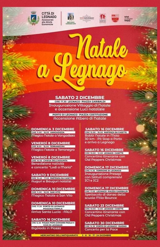 La stagione natalizia legnaghese prenderà ufficialmente il via Sabato 02 Dicembre alle ore 17.30, con l'inaugurazione del Villaggio di Natale in Piazza Garibaldi e l'accensione delle luminarie.