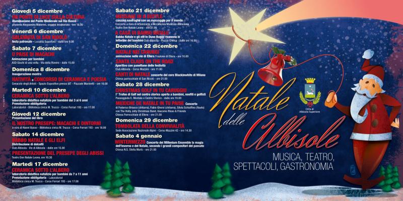 Ad Albisola Superiore in provincia di Savona si festeggia nei giorni dal 05 Dicembre 2019 al 04 Gennaio 2020 il Natale con Musica, Teatro, Spettacoli e Gastronomia.