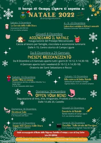 Da Sabato 10 a Venerdì 30 Dicembre 2022 -