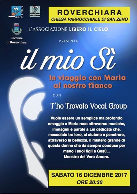 Sabato 16 Dicembre alle ore 20.30 vi aspettiamo a Roverchiara per festeggiare insieme il Santo Natale che si avvicina!! Invitate anche i vostri amici e parenti per una serata magica vissuta insieme alla nostra Mamma Celeste, Lei che ci porta in dono Gesù!!
