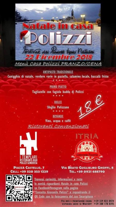 Tutto pronto a Polizzi Generosa per la prima edizione di "Natale in casa Polizzi" che si svolgerà sabato 22 dicembre. Musica, cultura, arte e specialità culinarie saranno gli ingredienti che vi permetteranno di immergervi in una magica atmosfera natalizia, il tutto impreziosito dalla maestosa location che, in linea con il nome della manifestazione, sarà il Palazzo Comunale, ex collegio dei Gesuiti ed attuale casa dei Polizzani. Durante l'evento avrete la possibilità, attraverso il "percorso sensoriale", di conoscere le meraviglie contenute all'interno del palazzo: dai testi di Giuseppe Antonio Borgese al civico Museo archeologico, dalla Biblioteca Comunale che ospita opere uniche e dal valore incommensurabile alla statua della Dea Iside che, dal 19 dicembre, sarà sistemata all'interno del Palazzo. Lungo il percorso, tappa obbligata sarà quella culinaria, con la degustazione dei due prodotti tipici polizzani più conosciuti ed apprezzati: "u cunigghiu" e i "cuccidati"! Il tutto condito dalla presenza dei caratteristici Mercatini di Natale dove troverete di tutto e di più e dai canti e balli dell'Auser "gruppo canti e balli popolari"! A chiudere l'evento sarà "u fistinu di Natali", dove, accompagnati dalla buona musica, potrete rivivere la magia della tipica cena della vigilia di Natale!