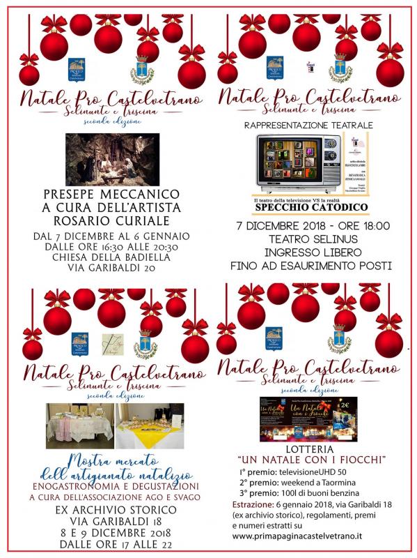 Dal 7 dicembre 2018 si susseguono gli eventi del Natale Pro Castelvetrano, Selinunte e Triscina - II Edizione: feste, presepi, sagre, caporanno e tanti altri appuntamenti natalizi.