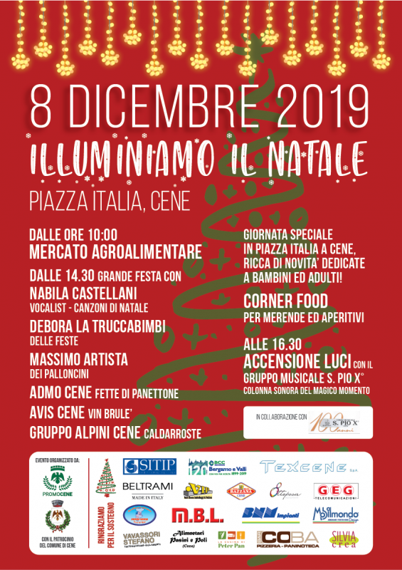 Domenica 8 dicembre 2019 torna il Magico Natale a Cene con mercatini, musica, divertimenti e novità dedicate a bambini e adulti.