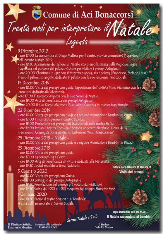 Ad Aci Bonaccorsi in provincia di Catania si festeggia nei giorni dal 08 Dicembre 2019 al 06 Gennaio 2020 il Natale.