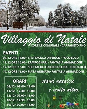 VENERDI' 8 DICENIBRE - ACCENDIAMO IL NATALE Ore 17.30 accensione dell'Abete di Natale a crea della Pro Loco Carpaneto