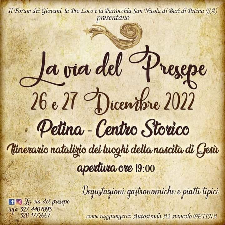 A cavallo fra Natale e Capodanno, immerso in uno scenario del tutto realistico, si rinnova l’appuntamento della “Via del Presepe”, nel centro storico di Petina il 26 e 27 Novembre