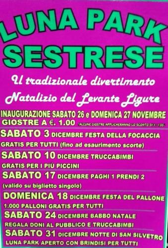 Luna Park Di Natale a Sestri Levante: Sabato 26 e domenica 27 novembre 2016 apertura del parco divertimenti con giostre e attrazioni nella zona demaniale sita nei pressi della Cooperativa Pescatori (spiaggia del Leudo).