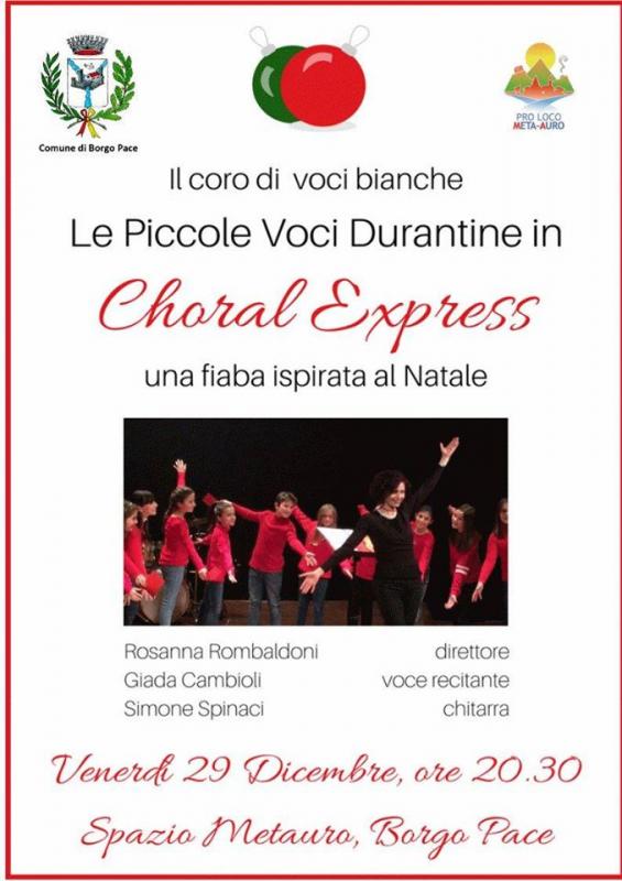 Non perdetevi l'appuntamento di Venerdì 29 Dicembre alle ore 20:30 a Borgo Pace "Choral Express - Una fiaba ispirata al Natale"
