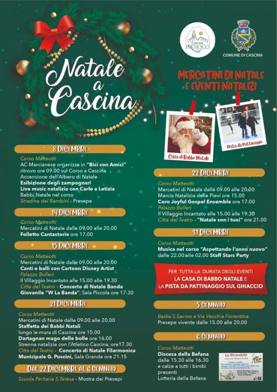 Dall'8 Dicembre 2019 al 6 Gennaio 2020 a Cascina ci si rilassa e ci si diverte con gli eventi di Natale.