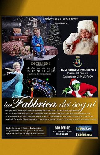 Non perderti l’evento più bello ed emozionante di Natale. Un cast di attori professionisti dell’intrattenimento artistico, ti coinvolgerà all’interno della Fabbrica dei Sogni dove potrai vivere un’esperienza unica ed irripetibile.