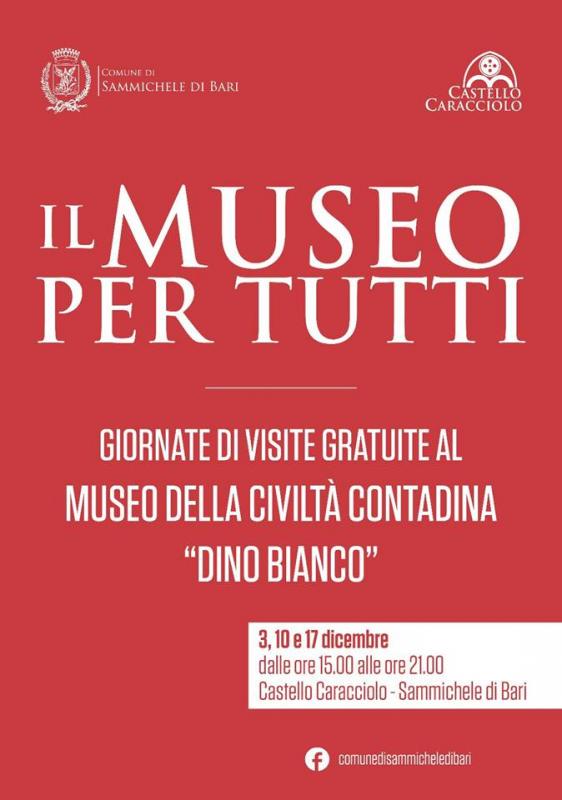Domenica sarà possibile accedere gratuitamente al Museo della Civiltà Contadina ubicato nel Castello Caracciolo.