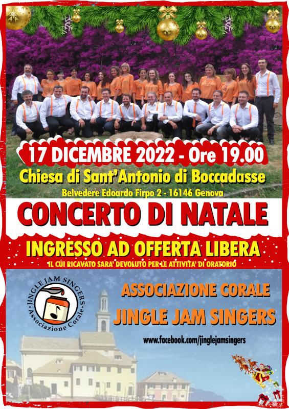 L'Associazione Corale Jingle Jam Singers è lieta di invitarVi al Concerto di Natale che si terrà nella Chiesa Sant'Antonio di Boccadasse a Genova in Belvedere Edoardo Firpo 2, sabato 17 dicembre alle ore 19,00.