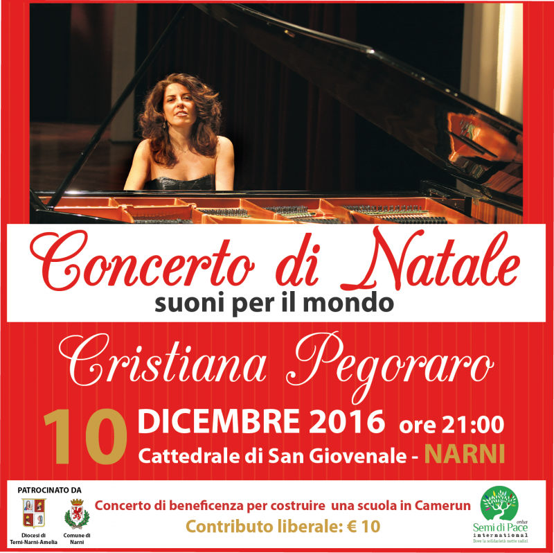 Patrocinato dal Comune di Narni e dalla Diocesi di Terni-Narni-Amelia, il concerto vedrà esibirsi Cristiana Pegoraro, pianista di fama internazionale. «Il concerto non sarà solo una eccezionale esibizione di musica con una straordinaria artista come Cristiana Pegoraro, ma anche un’opportunità di fare concretamente del bene. – sottolinea l’associazione – Il ricavato dell’evento sarà interamente devoluto al progetto di costruzione della scuola primaria “Saint Jean” in Camerun, che vede al nostro fianco un’importante realtà imprenditoriale con la Bonifazi Franchising Immobiliare. La struttura, una volta completata, ospiterà 200 bambini della Diocesi di Batouri, tra i 6 e gli 11 anni».