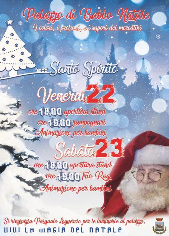 Il 22 e 23 dicembre 2017 a Stigliano sarà aperto il Palazzo di Babbo Natale. Per due sere a Palazzo di Santo Spirito si troveranno colori, i profumi e i sapori dei mercatini natalizi