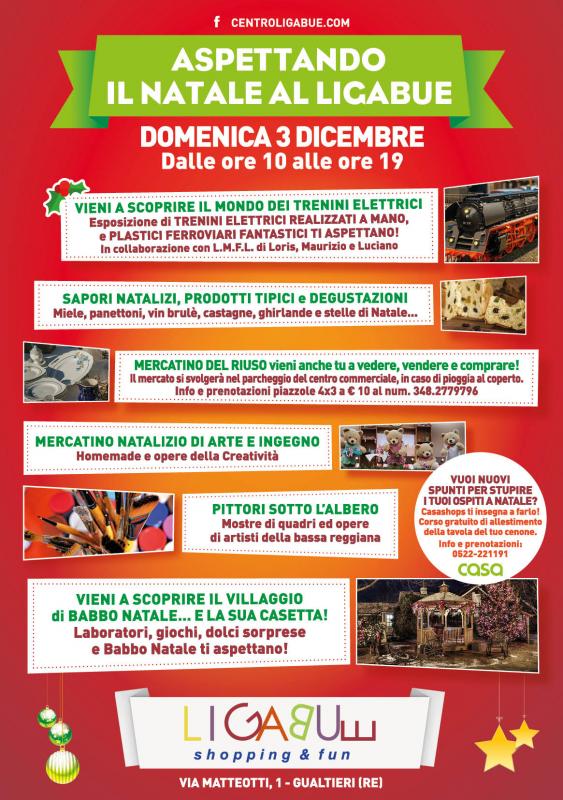 Domenica 3 dicembre 2017 dalle ore 10:00 alle 19:00 al #ccLigabue, una grande festa con assaggi gratuiti, mostra articoli regalo, musiche e cori natalizi, mostra di trenini, il grande Villaggio di Babbo Natale per i più piccoli... e tanto altro ancora!