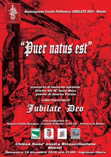 il CORO POLIFONICO JUBILATE DEO, presenta un concerto di musiche natalizie intitolato: “PUER NATUS EST”.