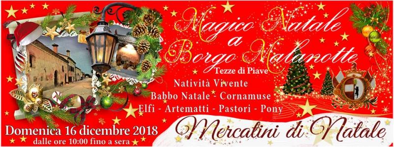 Il Gruppo Borgo Malanotte augura Buone Feste a tutti e Vi aspetta a Vazzola, Domenica 16 Dicembre 2018, dalle ore 10:00, nella splendida cornice dell’antico Borgo Malanotte vestito a festa, per trascorrere una giornata all’insegna del “Magico Natale”, con un ricco programma che soddisferà grandi e piccini: