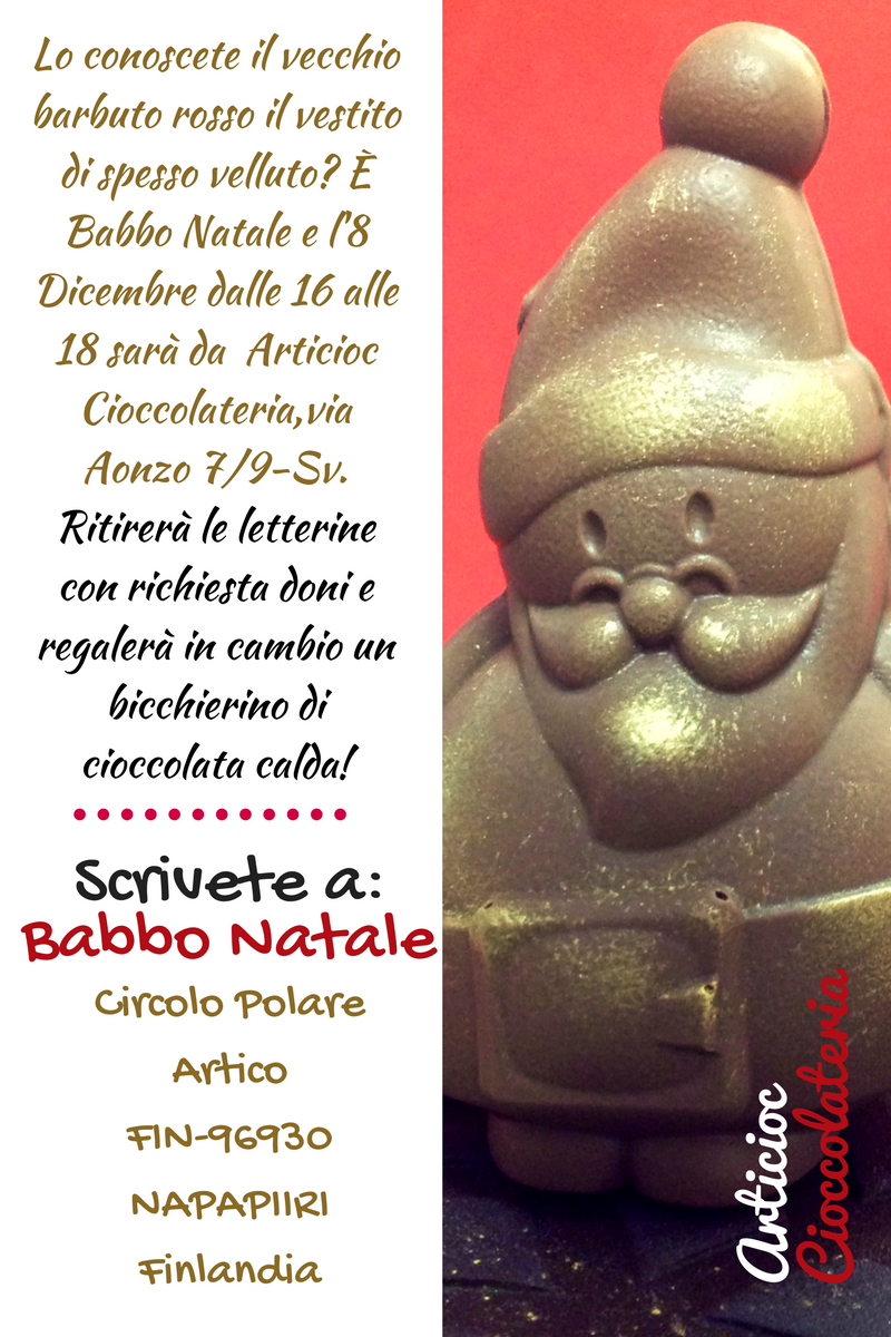 Babbo Natale arriva da Articioc Cioccolateria l’8 Dicembre 2016 dalle 16 alle 18, in via Aonzo 7/9 a Savona.