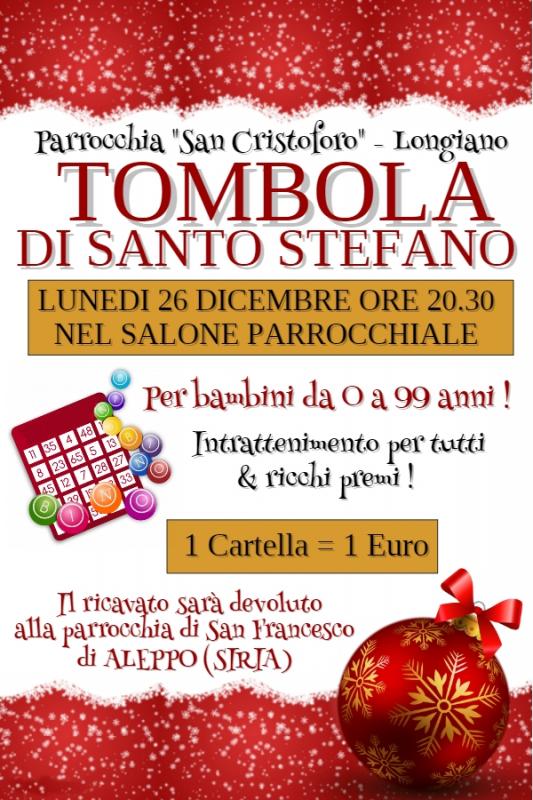 Fra gli eventi natalizi organizzati dalla parrocchia, si segnala una tombola di beneficenza. Avrà luogo lunedì 26 gennaio alle ore 20,30 nel salone parrocchiale.
