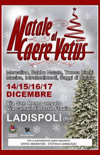 Al Caere Vetus, in Via San Remo, angolo Via Campi di Torre Flavia a Ladispoli in provincia di Roma si festeggia nei giorni 14, 15, 16, 17 Dicembre 2023 il Natale.