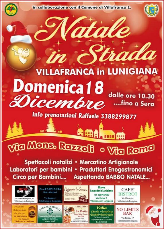 Domenica 18 Dicembre "Natale in Strada" a Villafranca in Lunigiana