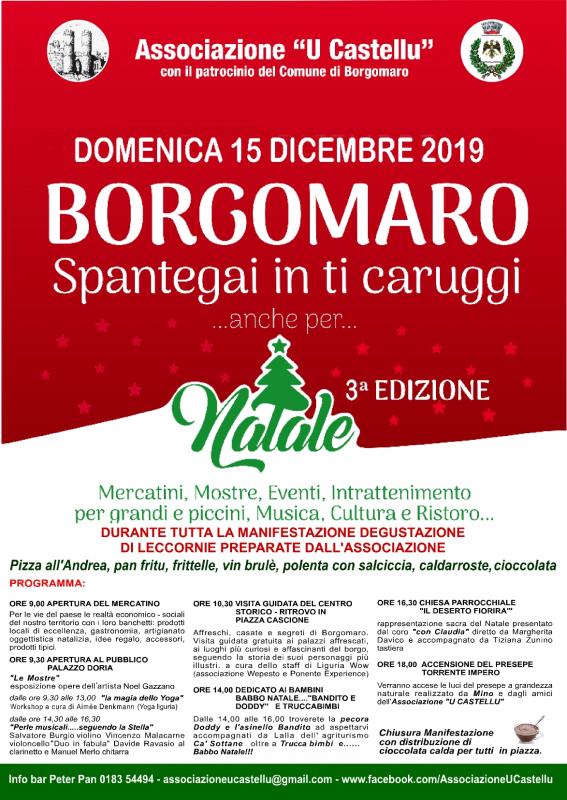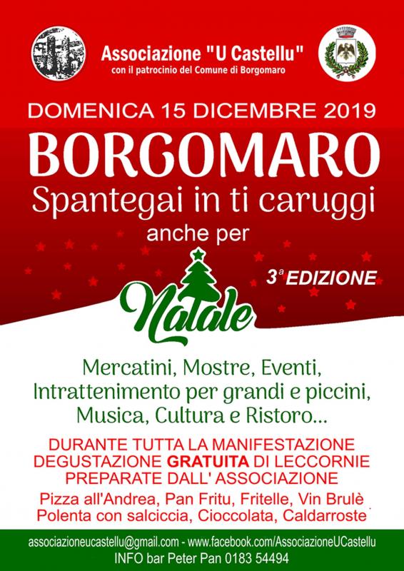In ultimo sottolineiamo che il presepe è inserito nel contesto natalizio del centro storico di Borgomaro che vede il classico albero e mercatini di Natale per domenica 15 dicembre 2019.