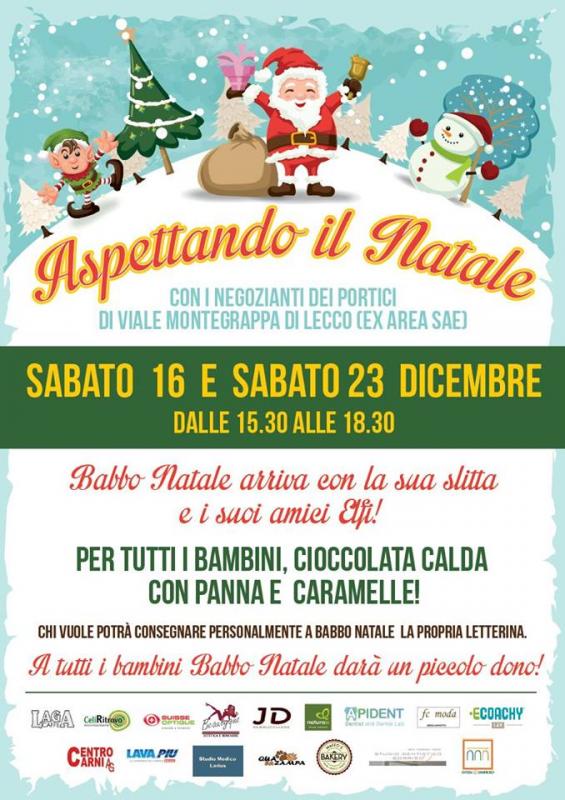 Ritorna questo sabato 24 dicembre l'evento ASPETTANDO IL NATALE, organizzato dai negozianti dell' Ex area SAE . Nell' atmosfera natalizia ci sarà Babbo Natale con i suoi elfi, che a tutti i bambini darà un piccolo dono e una cioccolata calda ...Vi aspettiamo!