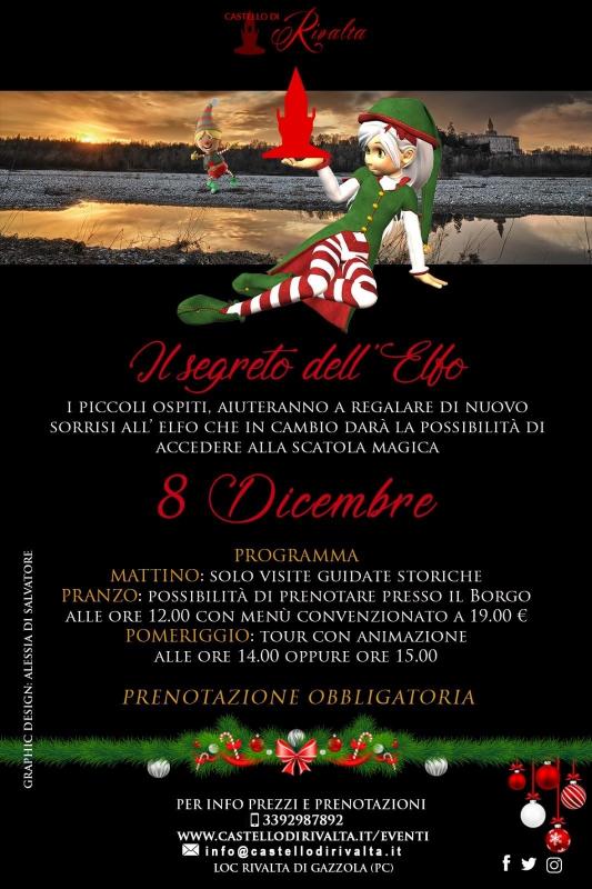 Con l’arrivo di Natale un velo di magia copre il borgo di Rivalta, con balconi e alberi di Natale ricoperti di luci che sembrano brillare come stelle… Ma l’ELFO del Castello è in difficolta’ e cerca l’aiuto dei piccoli piu’ coraggiosi e dal cuore tenero, per poter dare il via ai festeggiamenti natalizi…