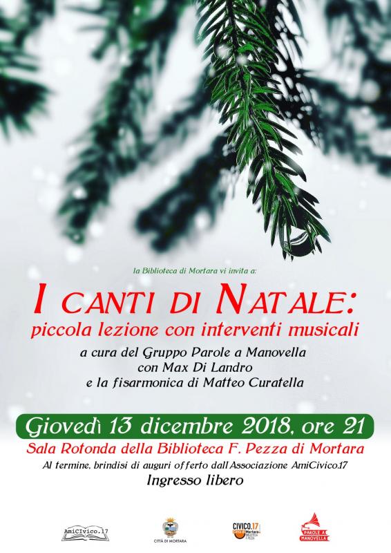 L'evento sarà offerto dall'Amministrazione Comunale e dall'Associazione AmiCivico 17 che, come sempre, offrirà al pubblico un brindisi di auguri a fine serata. La storia dei canti di Natale vi attendo, quindi, nella Sala Rotonda della Biblioteca di Mortara, corso Vittorio Veneto 17, giovedì 13 dicembre 2018. L'ingresso è libero