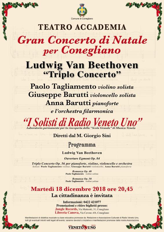 Il programma della serata, organizzata da Radio Veneto Uno per festeggiare insieme il Natale, è interamente dedicato a Ludwig Van Beethoven.