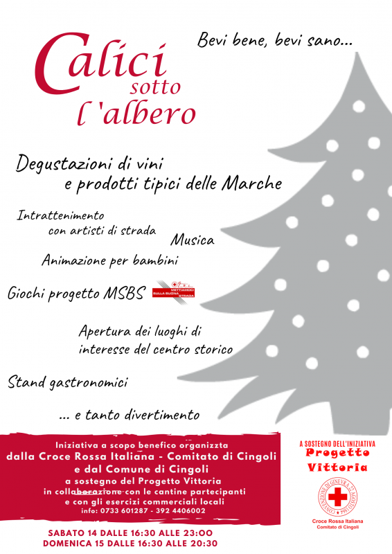 Il 14 e il 15 dicembre ci sarà Calici sotto l’Albero, festival enogastronomico organizzato dalla Croce Rossa di Cingoli e dall’Amministrazione Comunale.