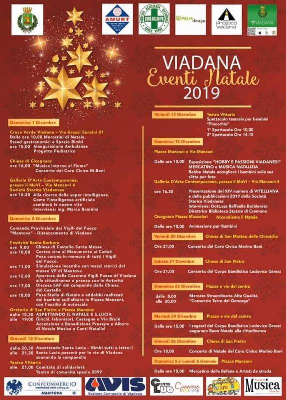 A Viadana in provincia di Mantova si svolgono nei giorni dal 01 Dicembre 2019 al 06 Gennaio 2020 i festeggiamenti del Natale 2019-2020.
