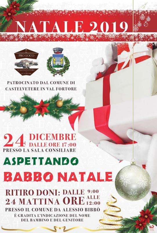 Dalle ore 17.00 presso la sala consiliare a Castelvetere in Val Fortore in provincia di Benevento si festeggia nella giornata di Martedì 24 Dicembre 2019 il Natale con "Aspettando Babbo Natale".