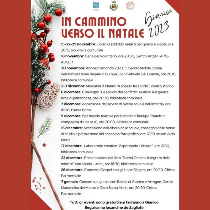 • 7 gennaio: Concerto augurale con Banda di Gianico e Artogne, Corale Madonnina del Monte e Coro Santa Maria, ore 20:30, Chiesa Parrocchiale Tutti gli eventi sono gratuiti e si terranno a Gianico Senuiranne locandine dettagliate