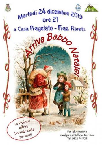 A Casa Pragelato, frazione Rivets, in provincia di Torino si festeggia nella giornata di Martedì 24 Dicembre 2019 alle ore 21.00, il Natale con Arriva Babbo Natale.