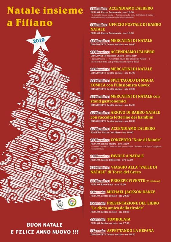 Tanti gli eventi di Natale in programma dal 08 Dicembre 2019 al 05 Gennaio 2020 nel Comune di Filiano.