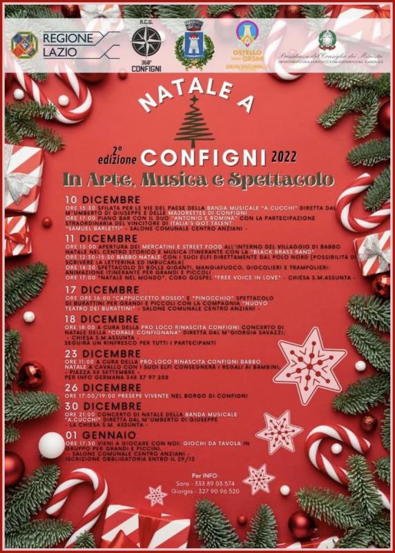A Configni in provincia di Rieti si svolge nei giorni dal 10 Dicembre 2022 al 01 Gennaio 2023 la 2a edizione di Natale a Configni - In Arte, Musica e Spettacolo.