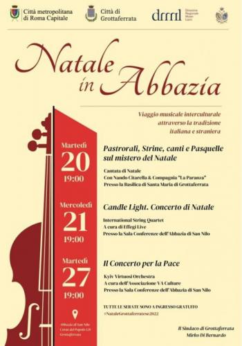 In arrivo tre serate imperdibili nella suggestiva cornice dell’Abbazia di San Nilo, che torna ad ospitare eventi artistici e culturali per tre degli appuntamenti più attesi del Natale Grottaferratese 2022.
