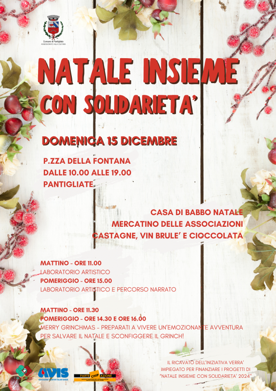 L'evento è organizzato con il patrocinio del Comune e in collaborazione con AVIS. Il ricavato dell'iniziativa sarà destinato a finanziare i progetti di "Natale Insieme con Solidarietà 2024".