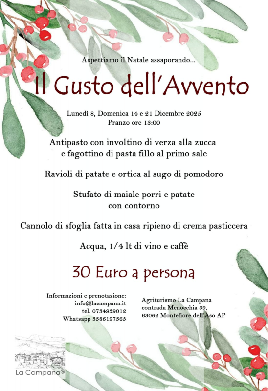 Informazioni e prenotazione tel. 0734 939012 - cell. e Whatsapp 3386197365 - email info@lacampana.it