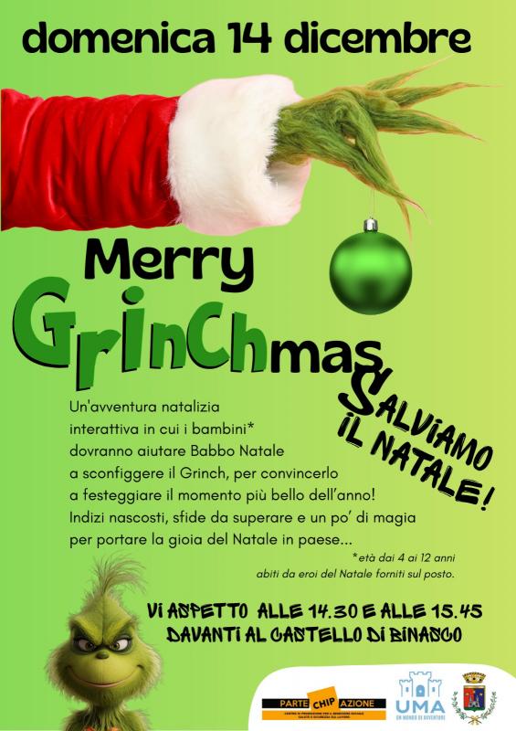 Merry Grinchmas - Salviamo il Natale! Avventura interattiva per bambini a BinascoUn'avventura natalizia interattiva per bambini dai 4 ai 12 anni! I piccoli partecipanti dovranno aiutare Babbo Natale a sconfiggere il Grinch e convincerlo a festeggiare il momento più bello dell'anno. Indizi nascosti, sfide da superare e un po' di magia per portare la gioia del Natale in paese. Abiti da eroi del Natale forniti sul posto!